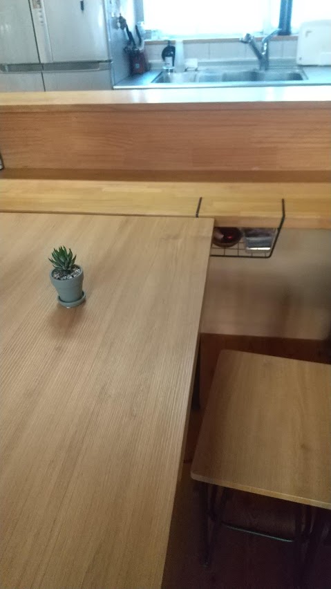 合うように、あとはナチュラルな木の色味がよいもので探してニトリさんのテーブルにしました!